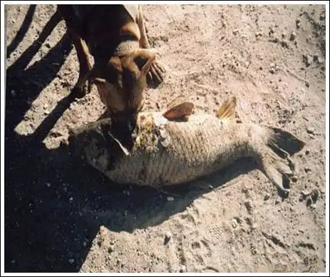 Сазанчики что ли?а вот на 7 на карпа похож,странно где это карповые так свободно плавают что их ловит собака?