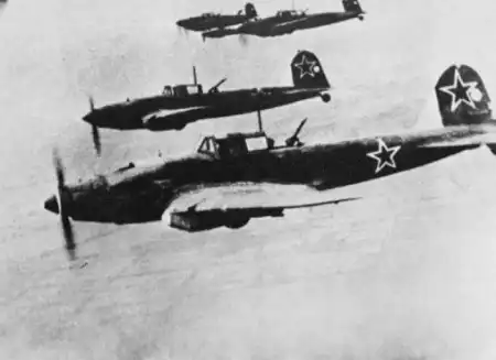 Созданный в 1939 г. конструкторским бюро под руководством С.В. Ильюшина, штурмовик Ил-2 отвечал всем этим требованиям. Бронированный Ил-2 с мощным стрелково-пушечным, ракетным и бомбовым вооружением отличался высокой маневренностью, был простым в пилотировании. Это был совершенно новый тип воздушной машины, предназначенной для действий по наземным целям с малых высот. Он по праву считается лучшим самолетом поддержки наземных войск в годы Второй мировой войны. Однако в начальный период войны заднюю полусферу Ил-2 оставляли незащищенной (не было стрелка-радиста), и самолеты несли большие потери от атак "мессершмиттов". Только с третьего квартала 1942 г. советская авиационная промышленность освоила выпуск двухместных Ил-2.