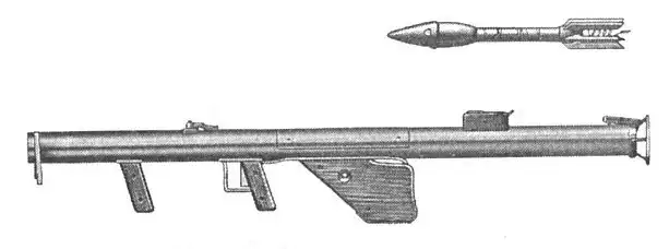 По принципу действия оно относилось к динамореактивному оружию и состояло из открытой с обеих сторон гладкостенной стальной трубы длиной 137 см., электровоспламенительного устройства, предохранительной коробки с контактным стержнем, прицельных устройств и плечевого упора. Масса гранатомета составила 8 кг. На заднем торце трубы было закреплено кольцо, облегчающее вкладывание гранаты в канал ствола, а на переднем торце имелся щиток, предохраняющий стрелка от действия раскаленных газов ракетного двигателя гранаты. Электровоспламенительное устройство, служившее для воспламенения реактивного заряда гранаты, состояло из двух сухих батареек, сигнальной лампочки, электропроводки и контактного замыкателя (спускового крючка). Сухие батареи и сигнальная лампочка находились внутри плечевого упора.