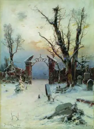 Зимний пейзаж кладбище. 1880 г. Левитан.