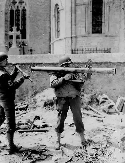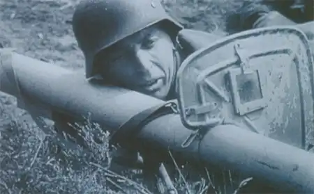 В 1943 году немцы попытались решить проблему противотанковой обороны с помощью реактивного ружья "Офенрор", стреляющего реактивными минами кумулятивного действия на дальность до 150 м. Разработка оружия была начата после захвата в начале 1943 года американской 60 мм базуки М9А1. Где была захвачена базука точно неизвестно то ли в Африке, то ли на Восточном фронте. Для улучшения боевых качеств оружия, было решено использовать калибр 88 мм. Разработка получила обозначение Raketen-Panzerbuchse (ракетная танковая винтовка) и официально имела аббревиатуру RPzB, но обычно упоминается как Panzerschreck (танковый ужас). В войсках её часто именовали просто Ofenrohr (дымоход).