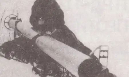 Panzerschreck из прессованного картона. Вес был сокращен до 2 кг, экономилось 5 кг металла - это нововведение так до конца войны и не было введенено в массовое производство.
