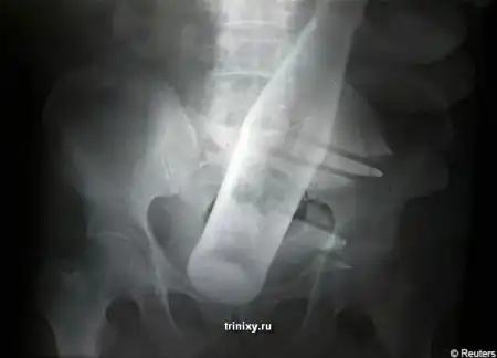 Этот случай произошел в Пакистане. 60-летнего мужчина пришел в больницу и доктор послал его делать рентгеновский снимок. Сам снимок и история в продолжении.