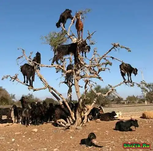 Марокко - единственная в мире страна, где козы из-за нехватки травы взбираются на деревья и пасутся там целыми стадами, лакомясь плодами аргании, дерева из орехов которого изготавливают душистое масло...