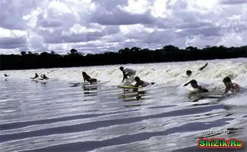 Самая длинная волна в мире.. В Бразилии, два раза в год, а именно между февралем и мартом, в устье Амазонки наблюдается прилив соленой, более тяжелой воды Атлантического океана... Он встречается с течением самой реки и оттесняет его... В результат чего образуются могучие встречные волны, достигающие высотой шести метров...