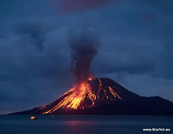 Дитя Кракатау извергает раскаленную горную породу на высоту до 700 метров. За 12 часов четверга - с 6 утра до 6 вечера - было зафиксировано 195 извержений, 4 глубоких и 49 поверхностных вулканических толчков.