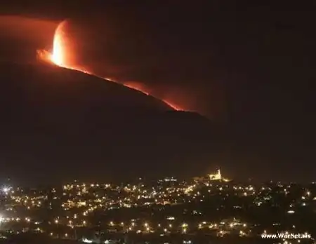 На Сицилии произошло одно из крупнейших за последнее время извержений вулкана Этна. Потоки лавы хлынули в долину. Огромные облака пепла поднимались на несколько километров.