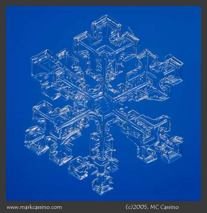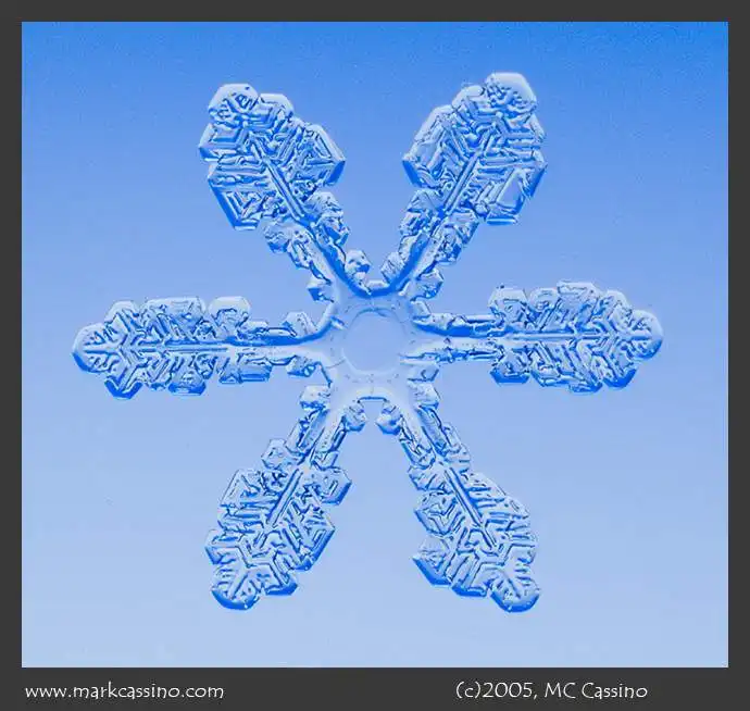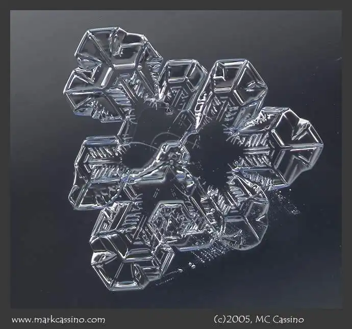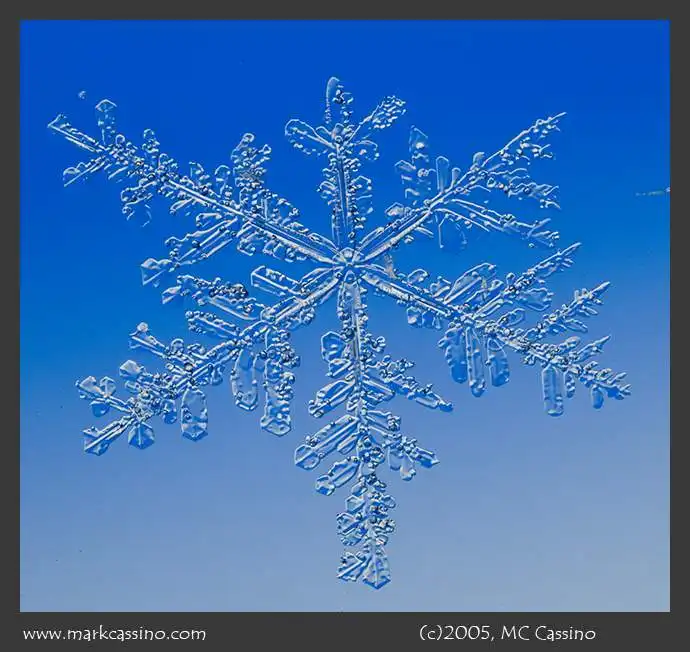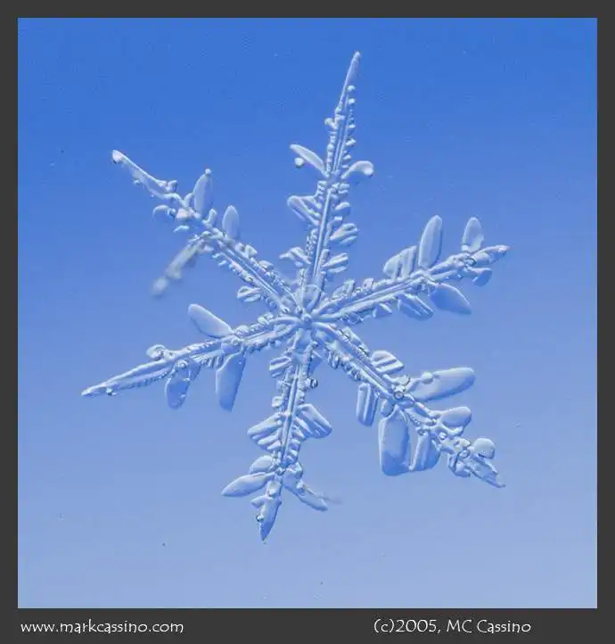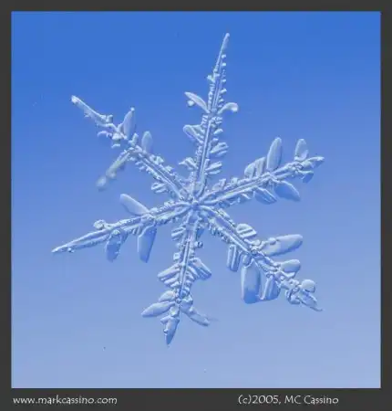 Как же образуются снежинки? Первоначально вокруг ядер кристаллизации (мельчайших инородных частичек) возникают зародышевые ледяные кристаллы. Перемещаясь вверх-вниз, они попадают в слой воздуха с переохлажденными капельками воды. Здесь будущая снежинка начинает интенсивно увеличиваться в размерах за счет сублимации (идет процесс непосредственного перехода водяного пара в твердую фазу - в снег). При этом выпуклые участки снежинки растут быстрее. Так, из первоначально шестигранной пластинки вырастает шестилучевая звездочка. Сталкиваясь на своем пути с переохлажденными капельками, снежинка упрощается по форме. Если столкнется с крупной каплей, может превратиться в маленькую градинку. Множество факторов влияет на образование и рост снежинок, потому так велико разнообразие их форм.