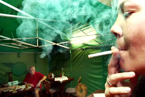 Надпись гласит: «Здесь разрешено курить». (Photo: Uwe Zuchhi / DPA)