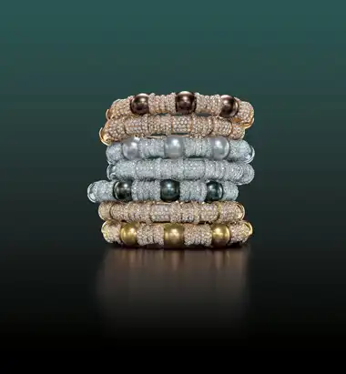 Эти браслеты выполнены из 18-каратного золота и крупного жемчуга, добытого на Таити и в Южном море у берегов Азии. Дополняют великолепие ограненные алмазы. Каждый из этих браслетов серии Classic Combination ювелирного дома Cellini стоит уже более 21 тысячи долларов.