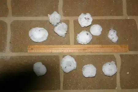 Был у нас в Томской области примерно такой же лет 10 назад... Я в это время на мотоцикле мчался из точки А в точку В. Когда по шлему пару раз прилетело "куриное яичко", под дерево спрятался...