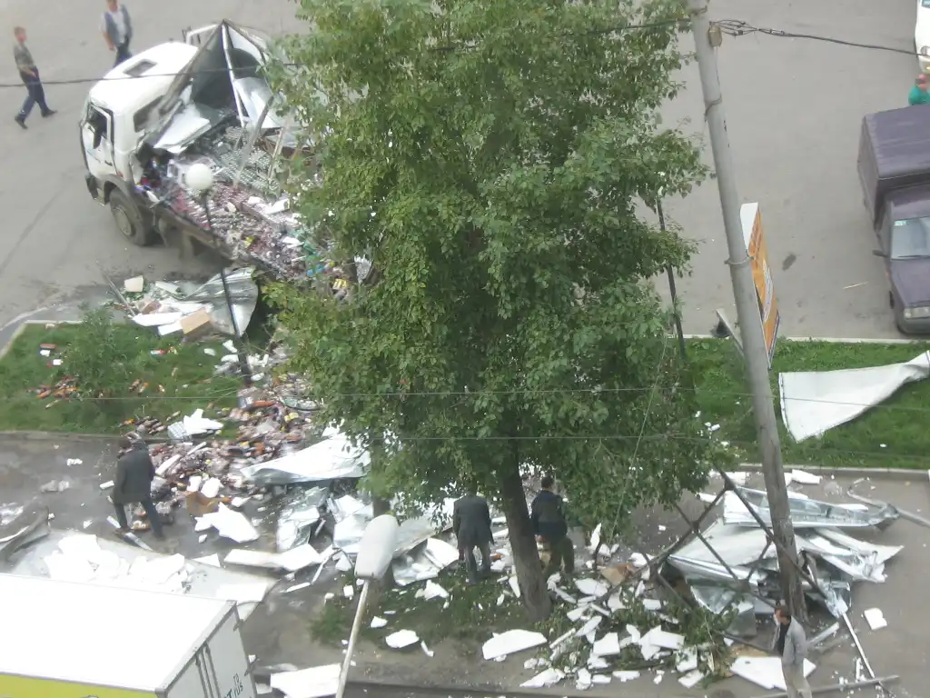 тормоза у МАЗа отказали, в будке 7 тонн пива было..