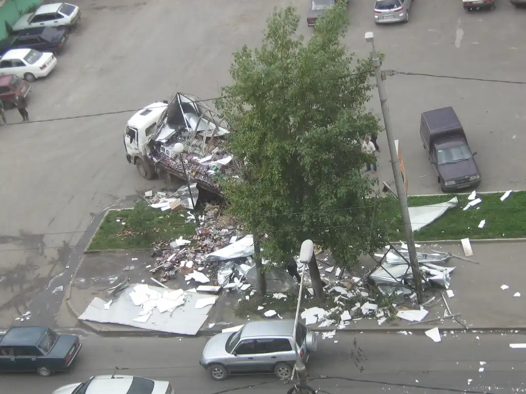 В кузове произошел взрыв, машину откинуло на тротуар