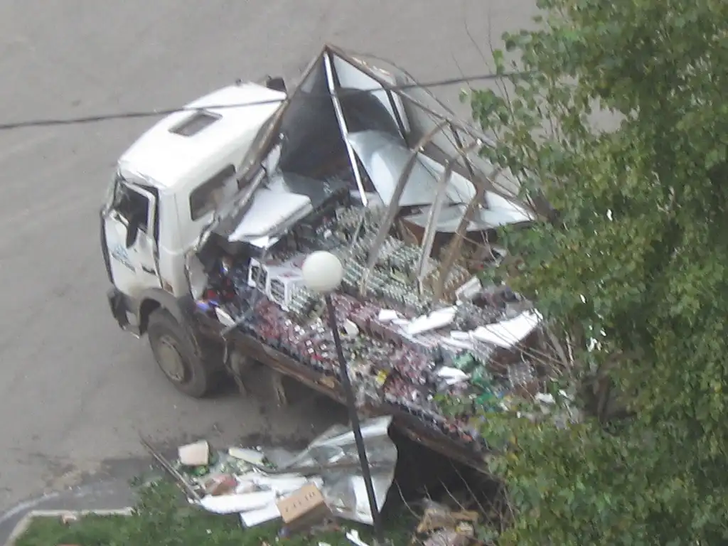 видать пивко было плохого качества, раз водила не сильно осторожно рулил...