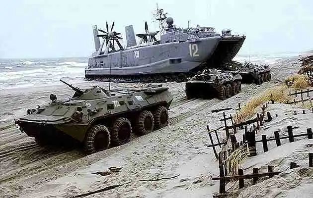 Поэтому в США несколько лет назад начались работы по созданию принципиально нового десантного средства. Испытывались различные машины: глиссирующие и на подводных крыльях, летательные аппараты и аппараты на воздушной подушке. В результате иностранные специалисты остановили свой выбор на последних. Перспективный БТР на воздушной подушке получил название LVA (от Landing Vehicle Assault десантная машина, штурмовая). Военные выдвинули требование, чтобы машина двигалась по воде со скоростью до 64, а на суше до 88 км/ч.