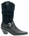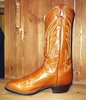 К 1880 годам ковбойские сапоги стали выделяться в отдельный стиль. Теперь можно встретить цилиндрические голенища, вставки в форме звезды и подковы, расшитые узоры и высокие каблуки. К 1900 году стали преобладать сапоги из четырех деталей - возможно, из-за того, что конструкция "цельного веллингтона" была сложна, а новый стандарт лучше сидел на ноге. В то же время "веллингтон" из четырех деталей исторически был привилегией состоятельных покупателей. Стиль моделей менялся с течением времени, появлялось множество вариантов отделки и цвета. Изменялась высота каблука и голенища, появлялись небольшие региональные особенности, так что сегодня наметанный глаз может заметить выраженную разницу между техасскими и северными сапогами, а возможно, и сапогами из района Большого Бассейна. Знатоки обуви в стиле "вестерн" выделяют в настоящее время четыре основных сложившихся исторически вида ковбойской обуви. Это парадный "веллингтон" из четырех деталей, который, как мы уже видели, эволюционировал из "цельного веллингтона" в 1800-х. Конечно, это сам "цельный веллингтон", который все еще в ходу и делается несколькими производителями как в исторически сложившейся, так и в современной конфигурации. Следующий вид - "пэкер". Как уже говорилось, сапоги со шнуровкой были широко распространены на фронтире. Добровольцы реже преследовали военную карьеру и чаще увольнялись со службы на западе страны. Существуют исторические фотографии ковбоев, сидящих на жердях кораля и наблюдающих за выездкой мустанга. На многих из этих фотографий ковбоев в сапогах со шнуровкой больше, чем ковбоев в традиционных сапогах. В каталоге компании "Хайер" 1926 года сапогам со шнуровкой для рабочих ранчо отведены три страницы. Последний, четвертый вид, который часто называют "голливудским", своими корнями уходит в сапоги армейского образца такого же типа как "веллингтон", но более позднего времени. В 1887 г. в армии появился другой вид сапог. Как и у английских сапог для верховой езды, у них был шов в задней части голенища, а не сбоку, как у традиционного "веллингтона". На самом деле, к 1889 году офицерские сапоги выглядели почти идентичными английским. Этот вид сапог был армейским стандартом до того времени, пока армия не отказалась от лошадей и конных частей вскоре после Первой Мировой войны. Как бы то ни было, этот вид обуви был родоначальником ковбойских сапог из трех деталей, с голенищем из одной детали и швом в задней его части, как и у армейских сапог. Так как голенище представляет собой большую площадь для декоративных украшений, именно этот вид сапог отделывался самыми красивыми и сложными узорами. В 1930- 40 гг. огромной популярностью пользовался голливудский стиль. Но этот вид сапог сложен в изготовлении, особенно в том случае, если он делается как сапог, а не как вариация ботинка.