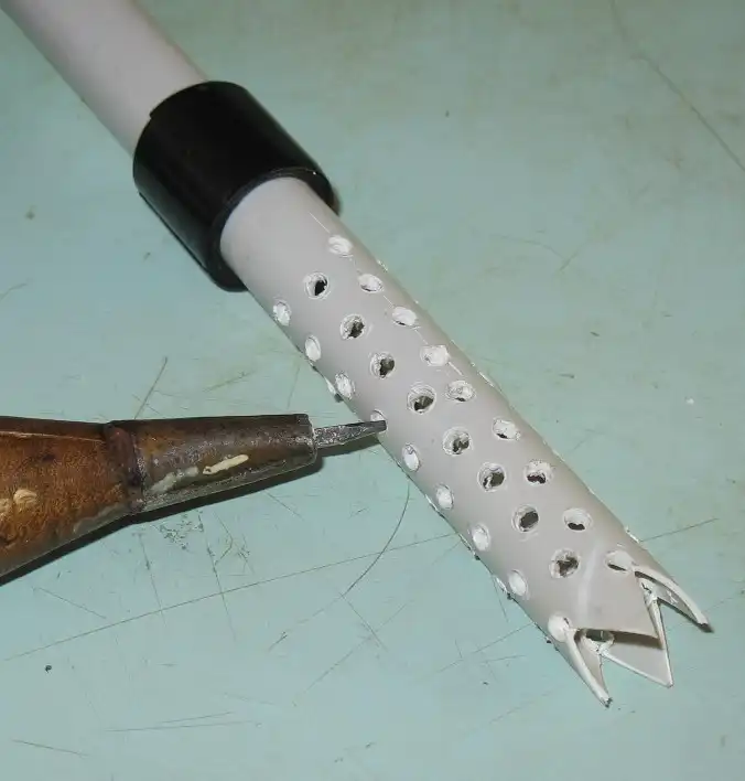 5.Торец трубки имеет большой диаметр и будет засасывать много грунта. Можно его просто чем то заткнуть. Другой вариант кусачками или пилкой делаем угловые выступы на торце трубки.