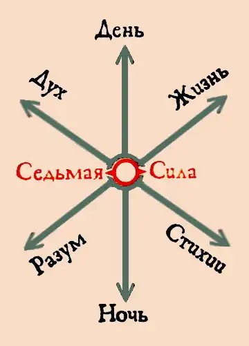 По этой системе, магия подразделяется на семь Сил. А именно: День, Ночь, Дух, Стихии, Разум, Жизнь и Седьмая Сила. День — сила дара, когда маг дает нечто окружающим: исцеление, защиту и так далее. Ночь — сила, которую маг берет у окружающих для себя. Дух — сила самоконтроля, из которого проистекает контроль над другими, в том числе над вещами (наговоры); Стихии — грубая сила страстей, неподвластных духу мага. Разум — власть над природой, Жизнь — подчинение и помощь природе. Седьмая Сила — загадочная, говорят, что это сила недеяния, пассивности.
