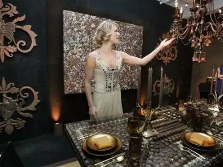 Шоколадные стены комнаты украшают "картины", выполненные из разных сортов сладкого деликатеса, - иллюзии на "Поцелуй" Климта и на работы Джексона Поллока.