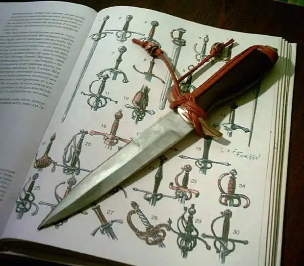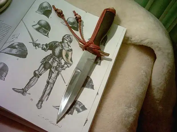Это был обычный мясницкий нож, но приспособленный для самозащиты и поэтому снабженный небольшой гардой. В средневековой Европе он являлся домашним оружием, а позднее из этих ножей в ходе развития и трансформации выделилось несколько веток вполне профессионального оружия: средиземноморский кинжал, некоторые виды охотничьих ножей, а также французские поварские ножи.