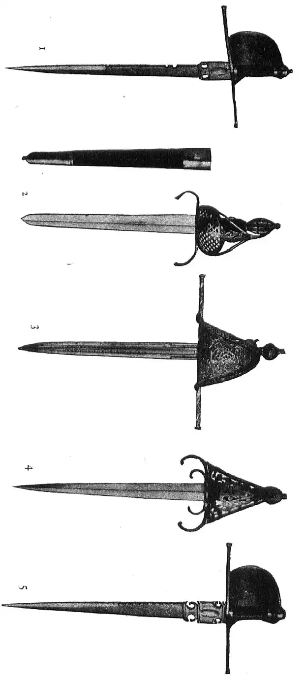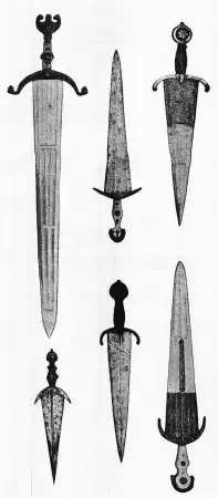 6. Чинкведеа. Тяжелое цивильное оружие, которое носили втайне, за спиной в XIV—XVI вв.