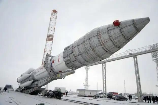 Российскую ракету-носитель Протон-М подготавливают к старту. Ракета, запущенная в понедельник днем с Байконура, вывела на орбиту норвежский спутник связи Thor-5.