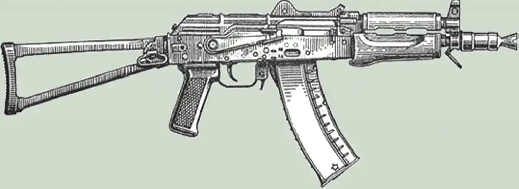 Автомат АКС-74у - укороченный вариант АКС-74. Длина ствола уменьшилась до 200 мм, начальная скорость пули снизилась до 735 м/с. Как результат уменьшилась и прицельная дальность. Для подразделений воздушно-десантных войск такое оружие оказалось слабым и малоэффективным при стрельбе на дальние расстояния, поэтому это оружие используют там, где важна компактность. В связи с этим вооружают им экипажи боевых машин, спецназ, а также милицию.
