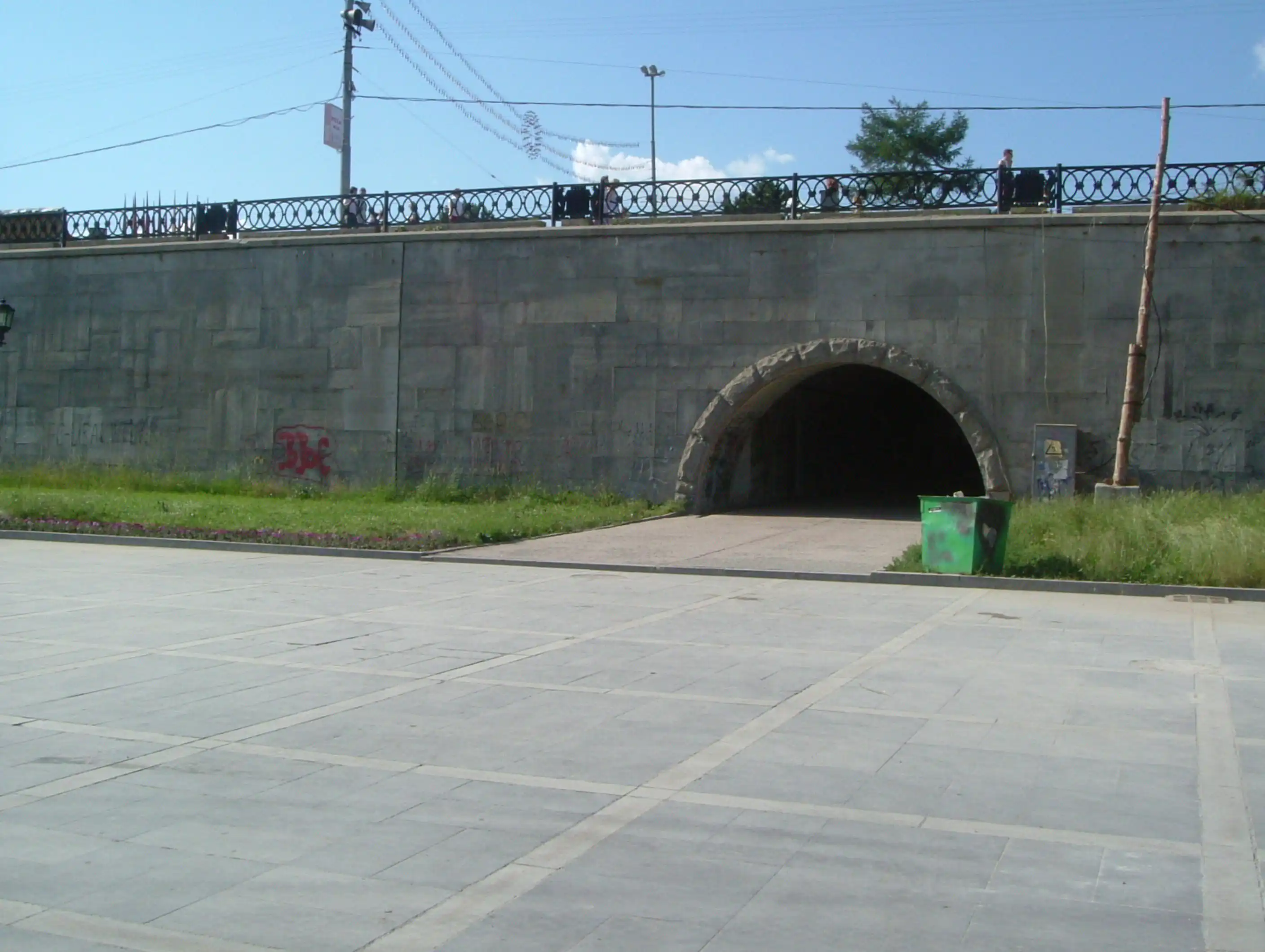 В середине города, дорога метров триста у них вымощена кирпичом. Смотрится очень красиво!