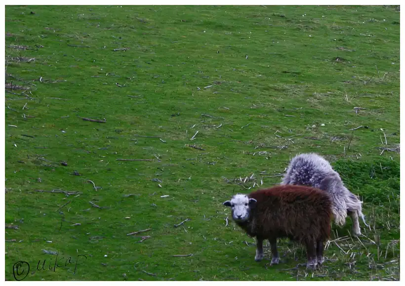 А так выглядят умные и укрывшиеся от урагана овцы. Овцы смотрят на меня так, как будто я собираюсь есть их траву.