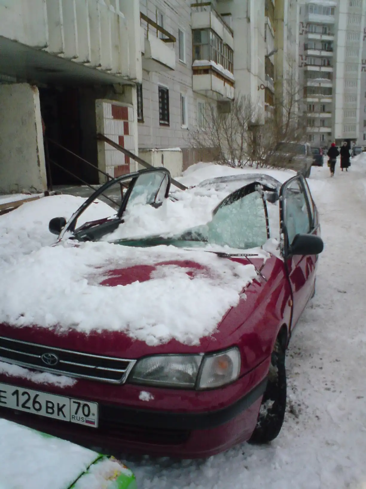 А как так ? Машина стоит от дома.. У 9 этажек карнизов нет.. Это что снег с крыши какието Дурачки скинули.. Вот дурдом