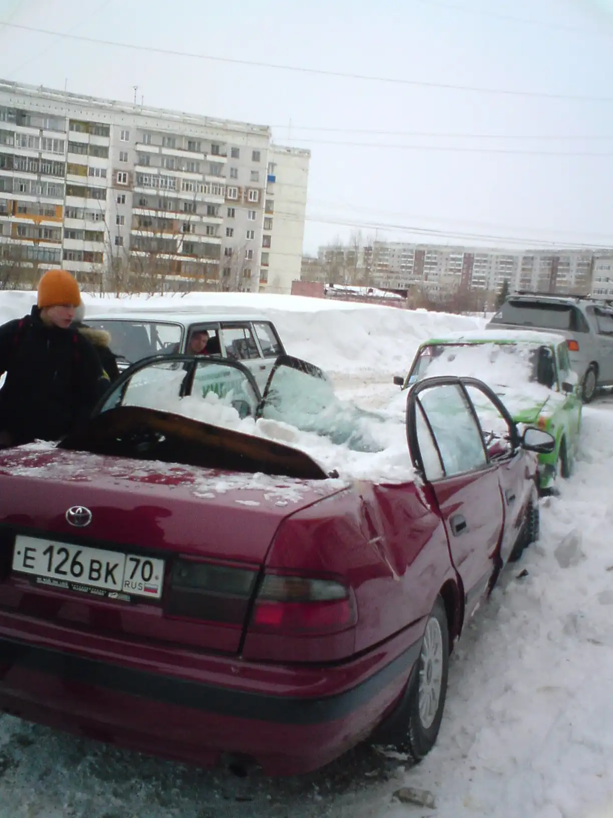 Тут короче мужик приехал домой с работы , а ему на машину снег рухнул с крыши...