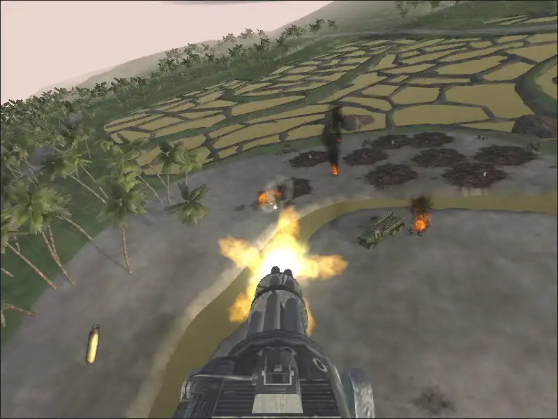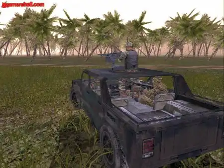 На подъезде — пустое пулеметное гнездо. Сзади зеленые трассеры вражеских выстрелов. Хватаюсь за пулемет, разворачиваю его в сторону возможной контратаки. Так и есть, ко мне на всех парах несется «багги». Грохочущая встречная очередь, машина резко виляет в сторону, врезается в дерево. Из нее выпрыгивают две фигурки и ныряют в траву. Тщательное прочесывание растительности «веером» приносит результат. Один за другим оба вражеских солдата гибнут под ударами пуль. Все, джип мне больше не нужен.