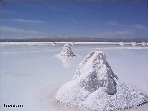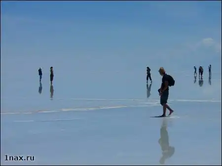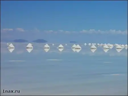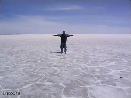 Салар де Уюни – высохшее соленое озеро - самый большой в мире солончак. Его площадь – 10582 кв. км. Он расположен в юго-западной Боливии (департаменты Potosí и Oruro) у гребня Анд на высоте 3650 метров. Когда поверхность солончака покрывается тонким слоем воды, он превращается в самое большое в мире зеркало.