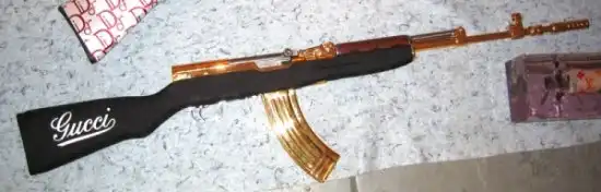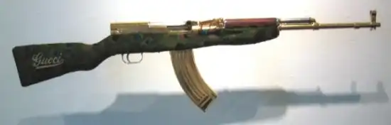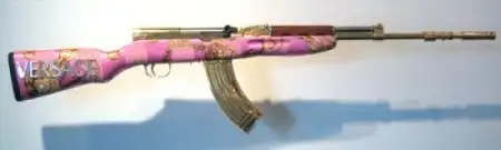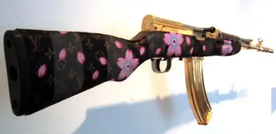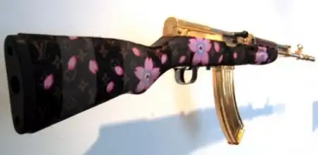 Питер Гронквист (Peter Gronquist) уже давно прославился своими модно-милитаристическими инсталляциями. Некоторое время назад в Лос-Анджелесе открылась персональная выставка художника под названием «Революция будет великолепной» (The Revolution will Be Fabulous), на которой автор представил одни из самых ярких и провокационных своих работ, включая автоматы АК-47 Versace, Dior, Burberry, гранатомет Chanel и бензопила Louis Vuitton.