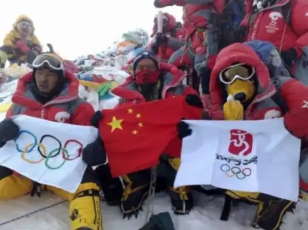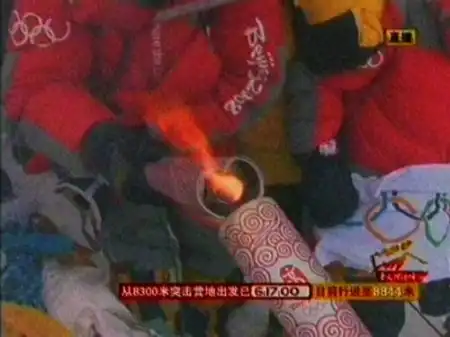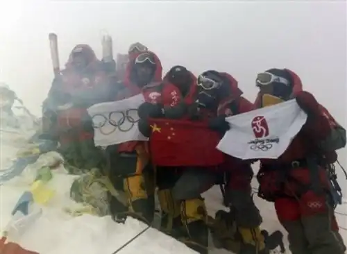 8 мая 2008 Олимпийский огонь был доставлен на высочайшую вершину мира — Эверест. Группа из 19 китайских альпинистов достигла вершины около шести утра по местному времени. Был совершен символический ритуал зажжения факела и проведена 30-метровая эстафета с олимпийским огнем.
