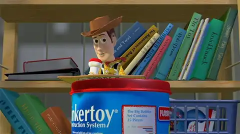 … которое напечатано на корешке одной из книг, стоящих на книжной полке за Вуди в мультфильме «История игрушек»?