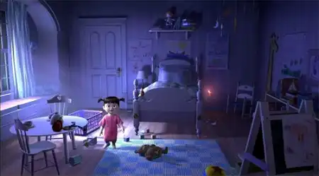 Раз уж речь зашла о спальнях… Наверное, самая знаменитая ссылка на самих себя была сделана студией Пиксар в мультфильме «Корпорация монстров». В моменте года Салли наконец-то возвращает Бу в мир людей, среди беспорядка в ее спальне есть мячик из «Люксо Мл.» (его можно заметить на фото ниже – он рядом с мольбертом) а так же куклу Джесси из «Истории игрушек 2» (слева на белом столе).