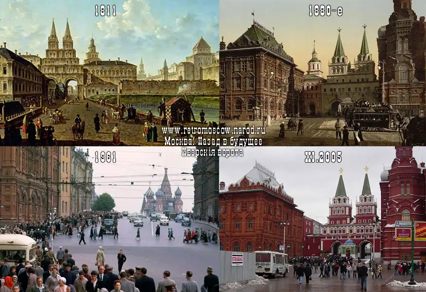 Воскресенские ворота были снесены при Сталине в 1931 (мешали заезду военной техники на Красную полощадь). Восстановлены в 1995, и с тех пор снова являются одной из самых красивых достопримечательностей Москвы. Перед Иверской часовней (также воссоздана в 1995) находится т.н. российский нулевой километр России, где туристы по обычаю бросают через левое плечо монетки, а нищие у часовни тут же их подбирают