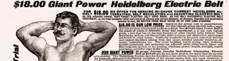 В 19 веке чудо, которое в себе заключало электричество, было известно каждому. Согласно рекламе, разнообразные электрические кровати и ремни могли вылечить мужчину от импотенции. Развилась целая индустрия по производству таких ремней для мужчин, которые могли даже сделать пенис покупателя больше. Тем не менее, использовать это изобретение было весьма проблематично, а точнее, невероятно больно. Так, крики первых покупателей чудо-ремней были слышны в соседних городах.