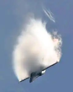 Возникновение облака из кондесата при преодолении барьера звуковой скорости