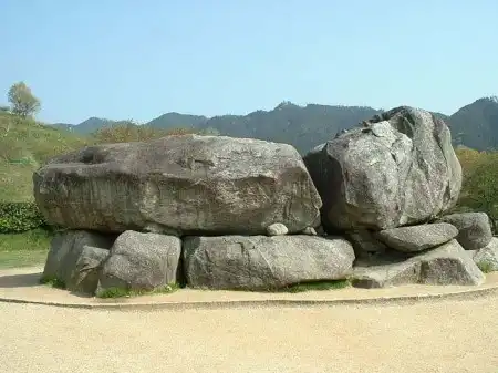 Наиболее известным объектом и местом туристических экскурсий в этом районе является т.н. "могила Ishibutai" (на схеме под номером 9, два фото ниже). Она примечательна тем, что является самым крупным сооружением подобного типа в Японии; а некоторые ее каменные глыбы достигают веса в 75 тонн. Таких сооружений, называемых kofun и/или tumulus, в Японии как минимум несколько штук, аналоги есть также в Китае и Корее.