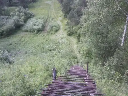 Девяносто метровый брошенный лыжный трамплин в Степановке. А ведь когда то прыгали, да еще как!))
