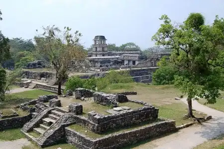 Паленке (Palenque, майя Лакамха) — условное название развалин большого майянского города на северо-востоке мексиканского штата Чьяпас — политического и культурного центра майя в 3-8 вв. н. э. Сохранились: остатки дворца (площадью 92 x 68 м) — группа зданий, расположенных вокруг 2 больших и 2 малых дворов, квадратная в плане башня; «Храм Солнца», «Храм Креста», «Храм надписей» (в толще его пирамиды в 1952 году обнаружено помещение с ложным сводом, барельефами на стенах и саркофагом в центре — видимо, гробница правителя). Все здания богато украшены рельефами из стука. Паленке погиб, вероятно, в результате нашествия племён с побережья Мексиканского залива в IX в. Руины известны с XVIII в. и неоднократно исследовались (в частности, мексиканскими археологами в 1949-68 гг.).