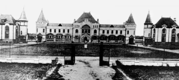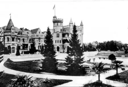 По преданию, В.Храповицкий, путешествуя по Франции в 1880-е годы, был в восторге от средневековых замков. На замечание французов, что в России ничего подобного нет, В.Храповицкий нашел своеобразный ответ: он заключил пари, что построит замок. Пригласив через несколько лет французских друзей в свое имение, хозяин продемонстрировал удивленным гостям не просто замок, а "готический" дворец с парком и каскадом прудов у главного дома. Так возник этот великолепный ансамбль,поражающий и поныне своим размахом и удивительной свободой пространственного решения.