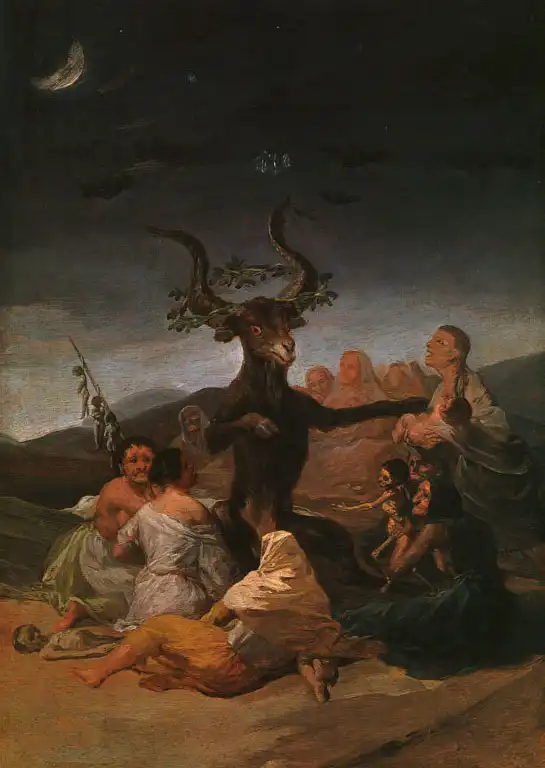 Она летит на “ведьмину гору” верхом на метле, лопате, кочерге, косе, вилах, в ступе, на плуге, палке, лошадином черепе, на сороке или на животных. На шабаше слетевшиеся Ведьмы танцуют вместе с чертями, поклоняются козлу, пируют, затевают козни против людей.