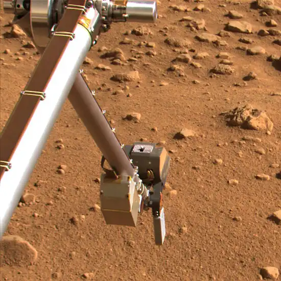 Образец марсианского грунта, в котором была обнаружена вода, «Феникс» достал примерно с пятисантиметровой глубины Красной планеты. Замороженную почву аппарат загрузил в миниатюрную печь-лабораторию, и на радость ученым оттуда пошел пар.