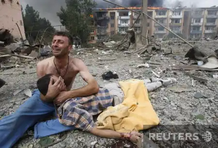 2. В Цхинвале идут непрерывные бои и это здорово видно по всему что показывают. Все что удается снять корреспондентам это съемки в минутные передышки между бомбежками, когда они могут выйти из укрытий и немного пройти/проехать по городу. Не стоит обвинять их в трусости. Тем более что несколько корреспондентов уже получили ранения. Остальные съемки в большинстве случаев это либо дороги к Цхинвалу или окрестные села уже занятые нашими солдатами. Не скажу что уже снято мало, просто сейчас почему-то очень многие каналы ставят на оперативку(только что полученный сюжет) а не на уже прошедшие, но серьезные кадры. Бабушка выглядывает из разрушенного подвала, развалины домой, плачущий ребенок в обрученном частично доме... C фотографиями то же самое. Поверьте камрады, если бы видео было его бы показали. Кстати на канале "Вести" уже идут тематические видеокадры.