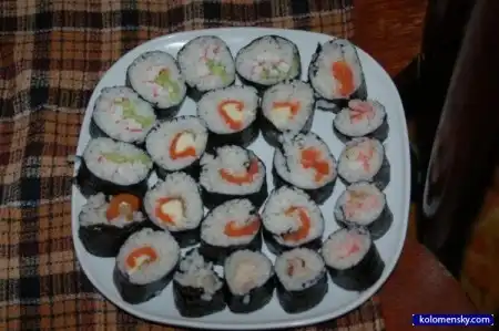 Также я освоил малотиражное производство суши ( именно суши а не роллов). Технология проще простого - лепим из риса комок и к нему крепим начинку. По вкусу.