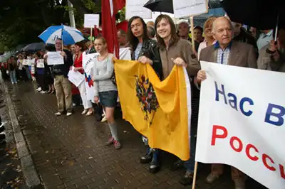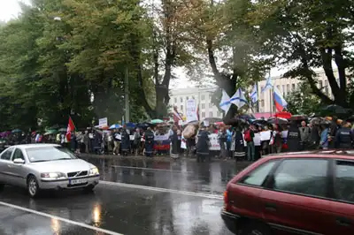 Несмотря на проливной дождь, 13 августа у посольства РФ в Риге прошел митинг в поддержку Южной Осетии и решительных действий России в отношении грузинских агрессоров. По разным оценкам в митинге приняли участие от 800 до 1000 человек. Митингующие держали в руках плакаты, российские государственные флаги и андреевские стяги. Почти весь митинг прошел под дружное и мощное скандирование: "Слава России!", "Саакашвили убийца!", "Россия, ты права!", "Россия оплот мира!", "Свободу Южной Осетии!", "Слава русскому солдату!", "Позор США!" и т. д.