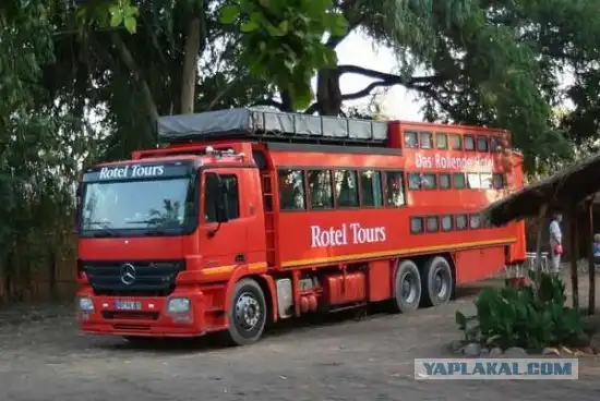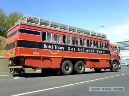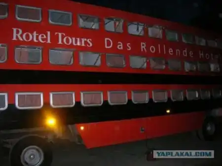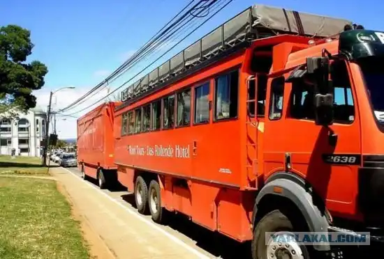 Передвижной отель по мнению проектировщиков, вещь для проведения концертов и фестивалей под открытым небом и других подобных мероприятий, когда у зрителей возникают проблемы с размещением. Передвижной отель создан на базе трейлера, и представляет собой 11-комнатную двухэтажную гостиницу. На нижнем этаже располагаются восемь стандартных номеров, на верхнем - три роскошных сьюта, способных вместить пять человек. В каждом номере есть туалет, кондиционер, телевизор, DVD-плеер и доступ в интернет.10 фот